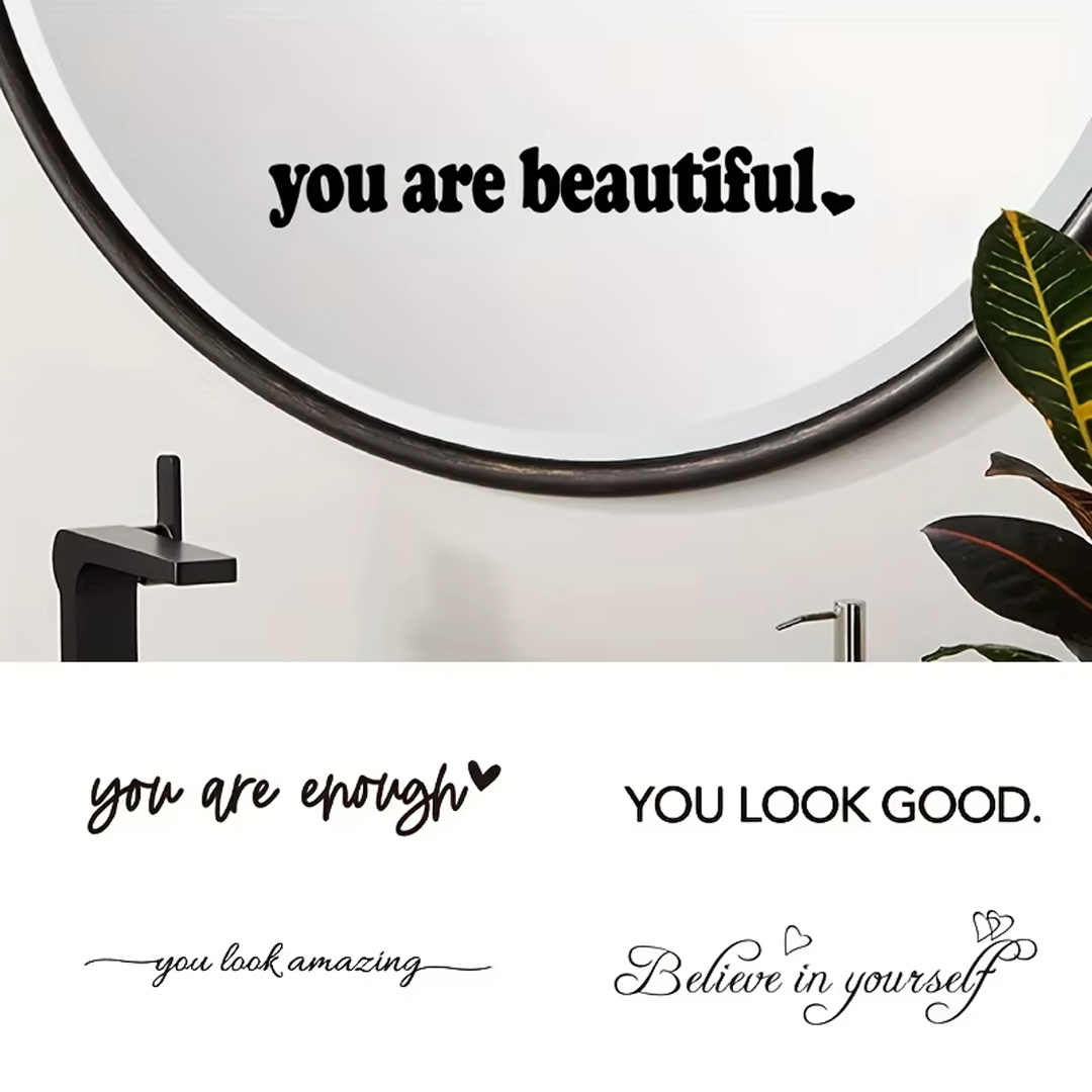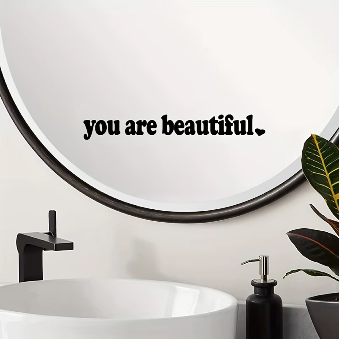 Whether you’re getting ready for work, winding down for the night, or catching your reflection in passing, this sticker offers a moment of reassurance. It’s a subtle, beautiful reminder that you are enough, you look amazing, and you are beautiful—messages we all deserve to hear often.